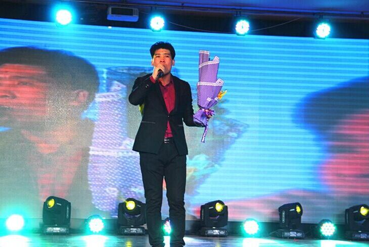最具實(shí)力歌手演唱《謝謝你的愛》,極具穿透力的歌聲,讓現(xiàn)場激情高漲!看下圖是不是舞臺范兒十足呢?