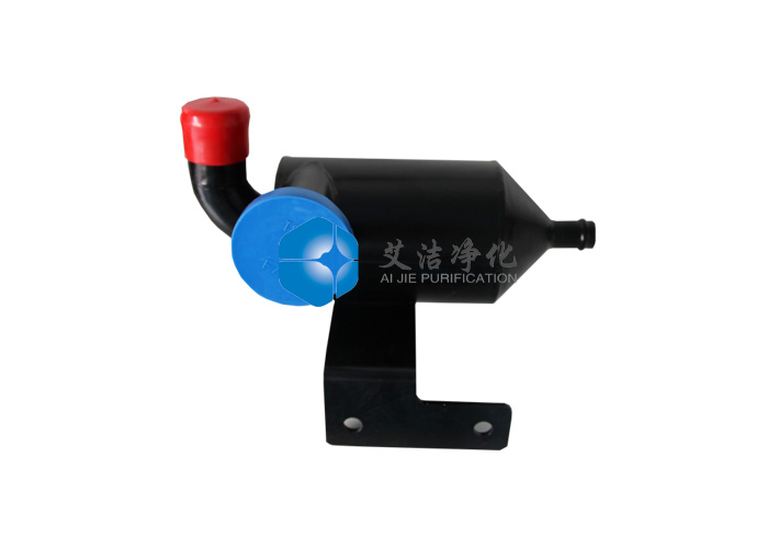 艾潔凈化生產(chǎn)的旋風(fēng)式油氣分離器是讓氣液混合氣經(jīng)過切向進氣道或是螺旋進氣道進入分離器內(nèi),使混合氣在分離器內(nèi)旋轉(zhuǎn)運動,以此產(chǎn)生離心力來實現(xiàn)油滴的分離,它的分離機理與主動離心式油氣分離器相同,只是不需外界提供動力。